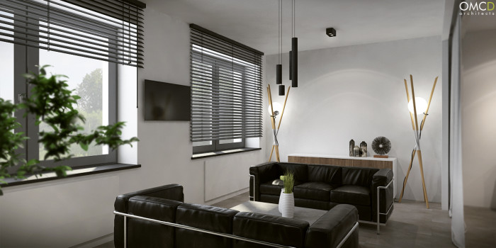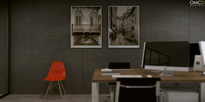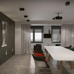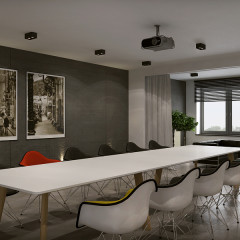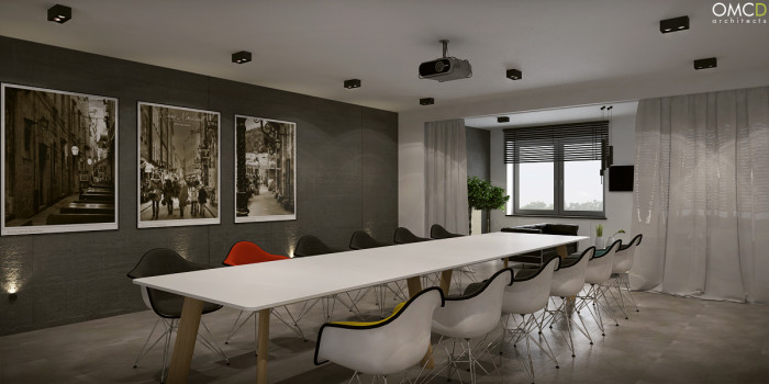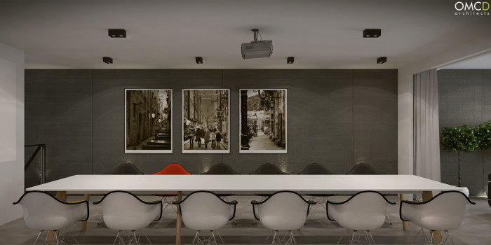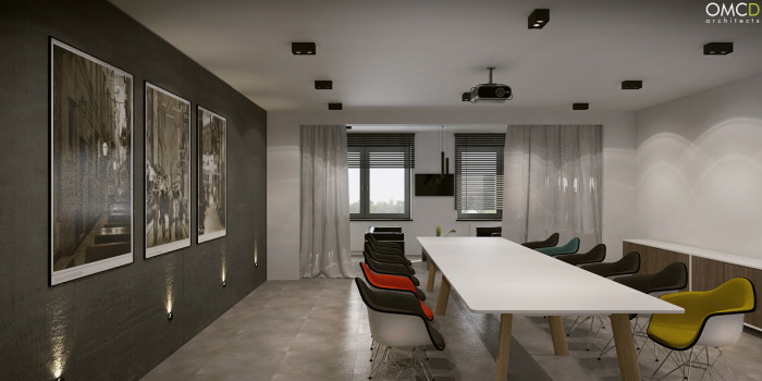 Hall, klatka schodowa, recepcja, biura, toalety, sala konferencyjna.