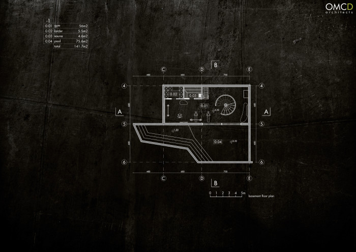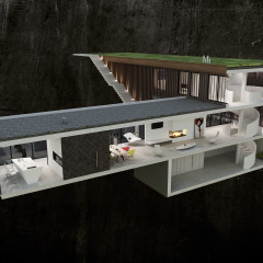 Jedną z głównych funkcji jest sala nagrań, na tyle obszerna, iż można w niej organizować kameralne koncerty. Na kondygnacji -1 znajduję się spiżarnia oraz siłownia. Kondygnacja +1 to funkcja dzienna – salon, kuchnia, jadalnia, toaleta. Drugą częścią tej kondygnacji jest sala prób/nagrań. Kondygnacja +2 to część sypialniana oraz gabinet.