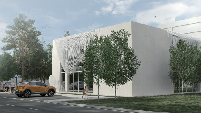 Projekt architektury budynku Biblioteki Publicznej w Bełżycach.